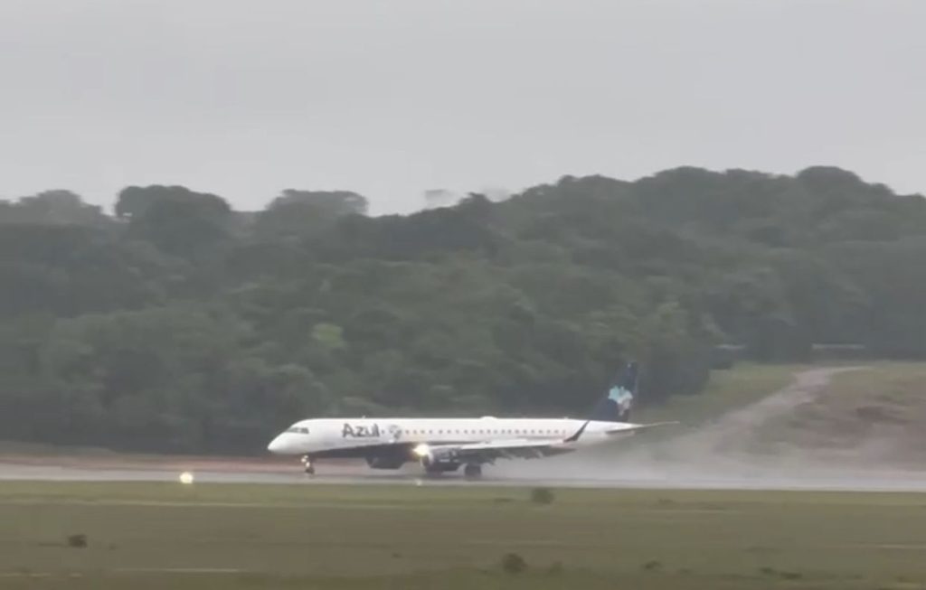 Um avião da Azul realizou um pouso de emergência nesta terça-feira (14), durante forte chuva no Aeroporto Internacional Eduardo Gomes, em Manaus. A informação foi divulgada pela Aviação Amazônia.