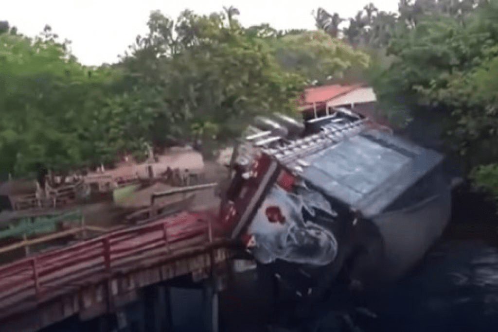 Uma ponte de madeira que conectava os municípios de Fernando Falcão e Mirador, no Maranhão, desabou durante a passagem de um caminhão, fazendo o veículo cair no Rio Alpercatas.
