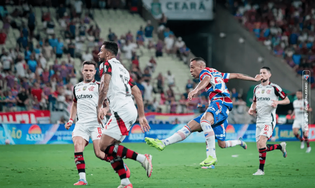 O gol da vitória saiu aos 11 minutos do primeiro tempo, com Breno Lopes — ex-Palmeiras. O atacante recebeu na intermediária pela direita, avançou e finalizou rasteiro no canto esquerdo do goleiro Agustín Rossi. O Flamengo pressionou em busca do empate, mas o Tricolor cearense resistiu e garantiu os três pontos, para delírio da torcida local — e do Palmeiras.
