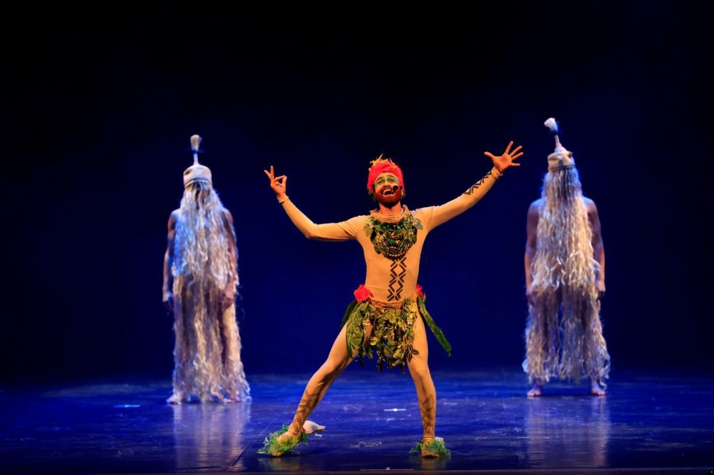 Com coreografia e elementos teatrais, a montagem ressignifica personagens e mitos amazônicos, como o Curupira, o Mapinguari e a Matinta Pereira.