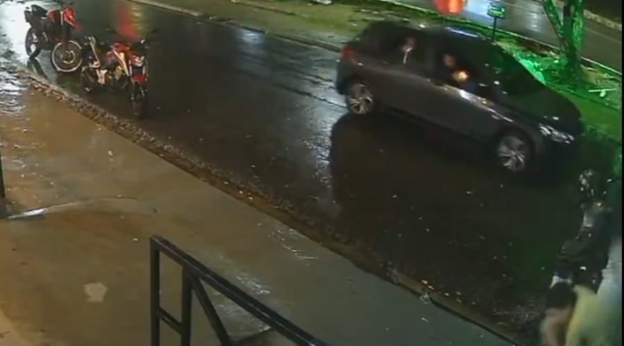 Nas imagens, é possível ver o jovem chegando ao local em uma motocicleta. Poucos segundos depois, um carro modelo Ônix, que estava estacionado próximo, se movimenta, e os ocupantes disparam várias vezes em direção à vítima.