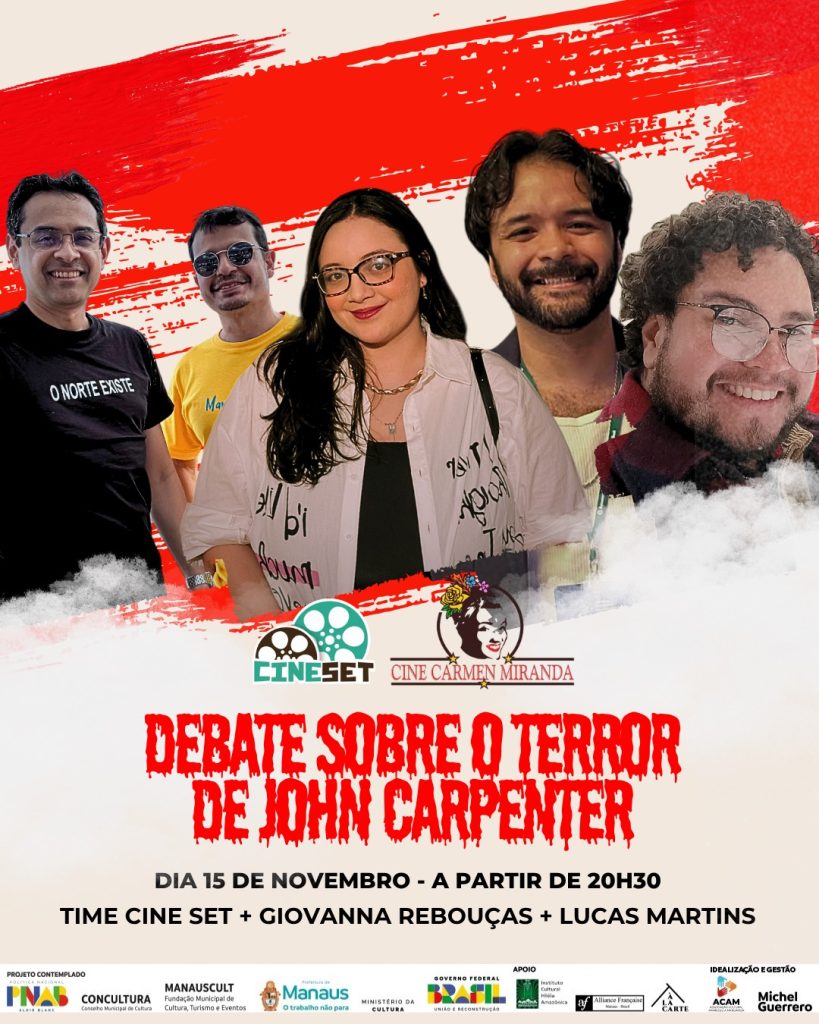 De quinta (13) a sábado (15), o Cine Carmen Miranda e o Cine Set apresentam o Especial John Carpenter, com sessões gratuitas a partir das 17h. O ciclo celebra a obra do diretor de terror e ficção científica, incluindo clássicos como Halloween – A Noite do Terror, Eles Vivem e O Enigma de Outro Mundo.
