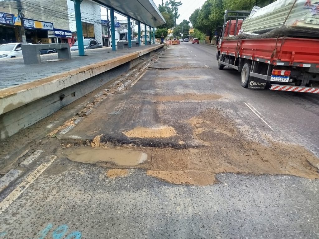 A suspensão do serviço ocorre devido às obras realizadas pela concessionária Energisa, que abriram valas na região e têm causado impactos na via, fazendo com que a parte inferior dos ônibus entre em contato com o solo ao acessar a plataforma.