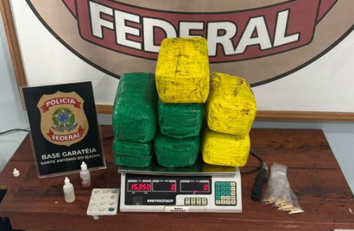 Sete tabletes de pasta base de cocaína, totalizando aproximadamente 15,35 kg, foram apreendidos pela Polícia Federal dentro de caixas de papelão, misturados a pacotes de bolachas e sacos de pirulitos. A ação ocorreu durante fiscalização de rotina em embarcação atracada no porto de Santo Antônio do Içá, na quarta-feira (3).