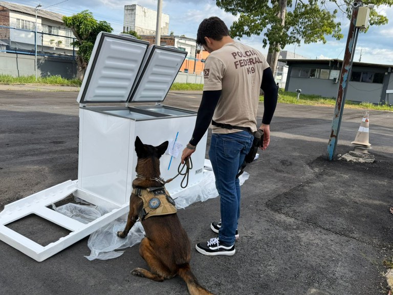 A ação ocorreu após o trabalho de inteligência da Polícia Federal, que levou à abordagem do veículo. Com o apoio de um cão farejador, os agentes localizaram tabletes de droga ocultos nas paredes de freezers que estavam acondicionados no baú do caminhão.