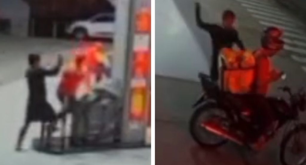 As imagens mostram o frentista sendo atingido no abdômen e nas costas de forma repentina. Em seguida, o agressor corre em direção ao motociclista, desferindo ao menos cinco golpes na direção do pescoço, fazendo a vítima cair da moto. Após o ataque, o suspeito fugiu sem deixar pistas.