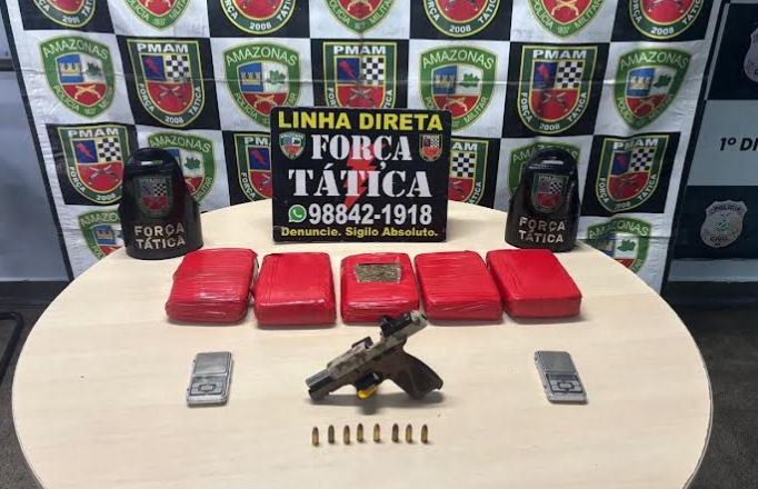 Manaus (AM) – A Força Tática apreendeu cinco tabletes de maconha do tipo skunk e uma arma de fogo no início da tarde desta sexta-feira (26/12), no bairro Betânia, zona Sul da capital.