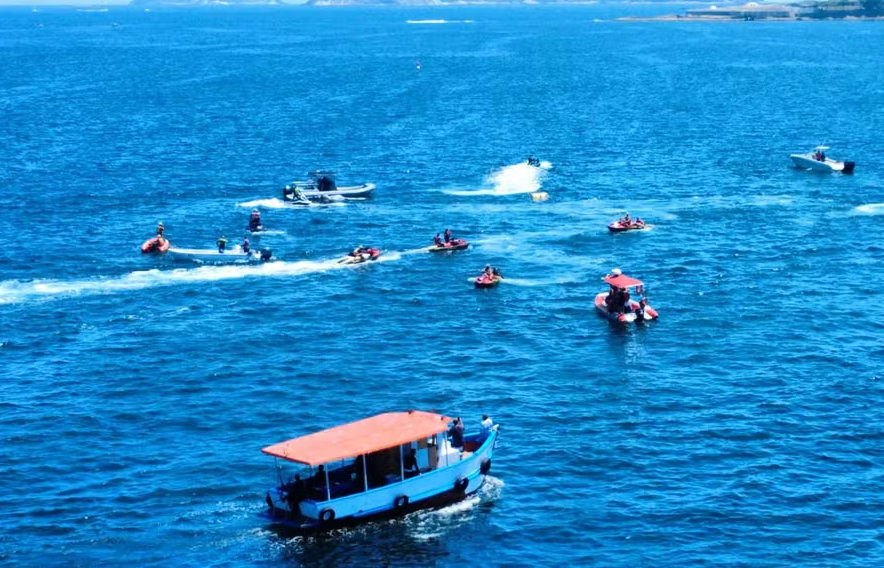 A aeronave caiu no início da tarde deste sábado. No momento, havia motoaquáticas e outras embarcações no local, mas não houve feridos.