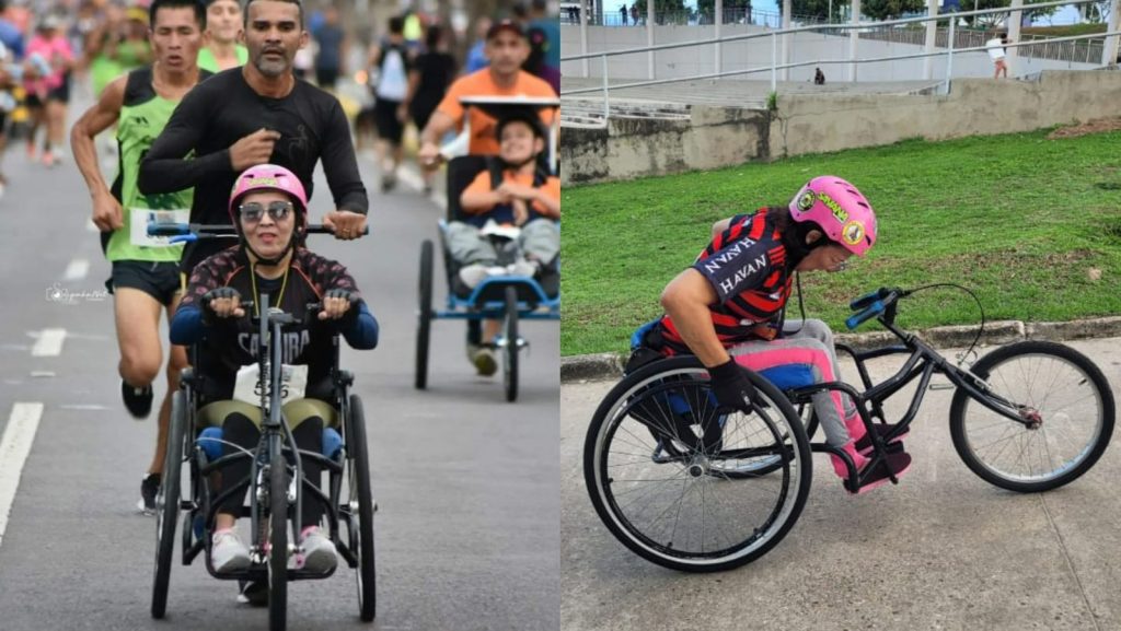 “Desde os dois anos sou PcD, quando fui crescendo eu me sentia diferente das outras crianças, porque não podia correr e queria muito isso, mas fui crescendo e entendendo que não podia. Minha mãe foi maravilhosa, não tinha posses, mas ela me [deu] o melhor amor, carinho e cuidado, me carregou no colo até os 12 anos“, relembra.