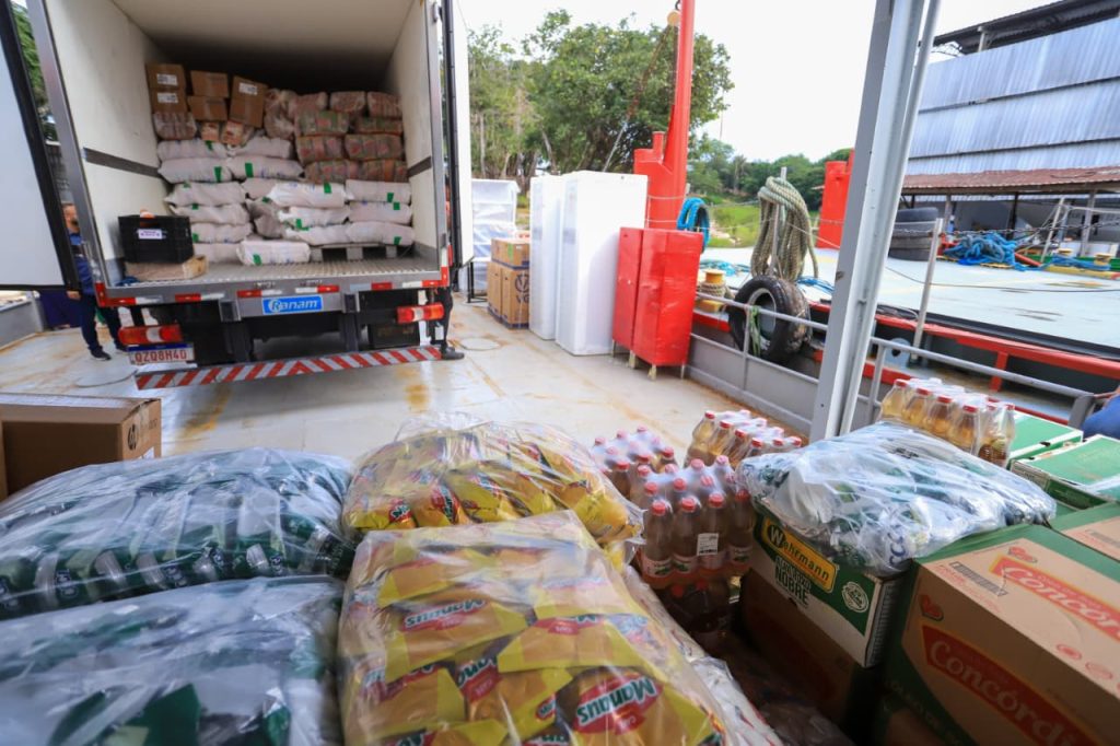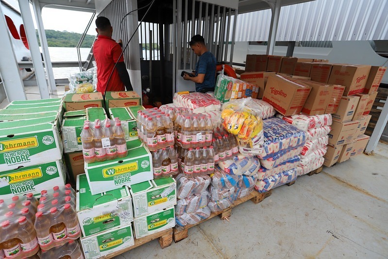 Para as escolas do rio Negro, foram enviadas 19 toneladas de alimentos, sendo 13 toneladas de itens básicos e 6 toneladas de produtos congelados, incluindo arroz, feijão, açúcar, aveia, café, biscoitos, leite em pó, macarrão, milho em flocos, óleo, temperos, além de proteínas como carne bovina (patinho), frango, peixe (tambaqui) e polpas de frutas.