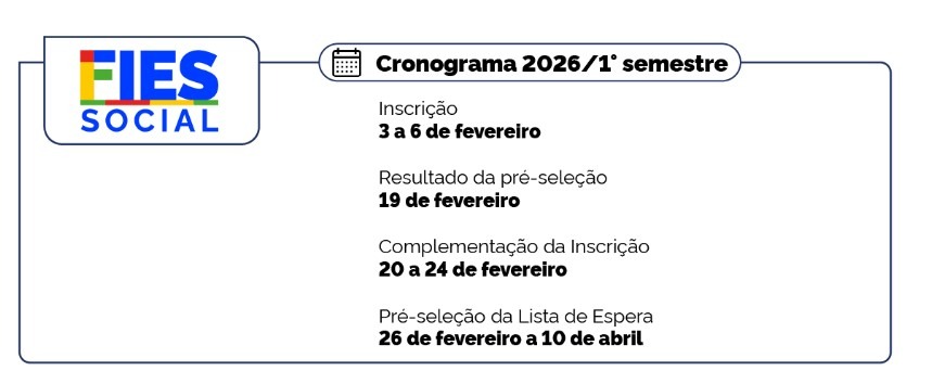 Os estudantes interessados em concorrer às vagas do Fundo de Financiamento Estudantil (Fies) 2026, referente ao primeiro semestre, podem se inscrever a partir desta terça-feira (3). As inscrições são gratuitas e seguem abertas até o dia 6 de fevereiro, exclusivamente pela internet, no Portal Único de Acesso ao Ensino Superior.