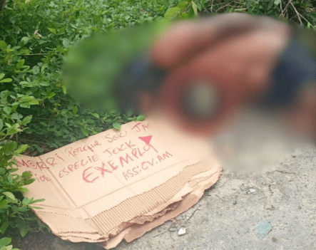 Ao lado do corpo, que estava com pés e mãos amarrados por cordas, os criminosos deixaram um cartaz com a mensagem: “Morri porque sou ‘Jack’ da pior espécie”. Segundo a polícia, esse tipo de recado costuma ser utilizado por criminosos do Comando Vermelho (CV), que se autodenominam responsáveis por impor regras em áreas dominadas pelo tráfico. A polícia investiga ainda se o suposto “Jack”, que na linguagem de criminosos significa estuprador, foi executado pelo “Tribunal do Crime”.