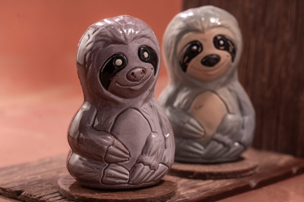 Todas as peças utilizam chocolate belga, sem glúten e sem gordura hidrogenada, combinando estética e sabor sem comprometer a qualidade.
