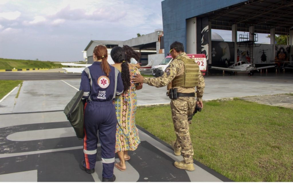 Após chegar a Manaus, a criança foi conduzida pelas equipes do Serviço Móvel de Urgência (Samu) para a unidade de saúde especializada em atendimento infantil.