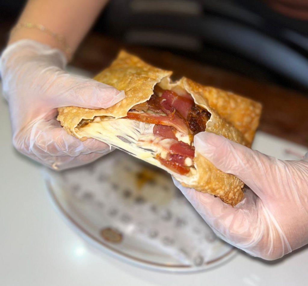 No Santa Brêja Gastrobar, o público encontra o “Di Porco”, preparado com pão francês torrado, creme de queijos ao alho, pernil desfiado e cubos de abacaxi salteados em mel apimentado.