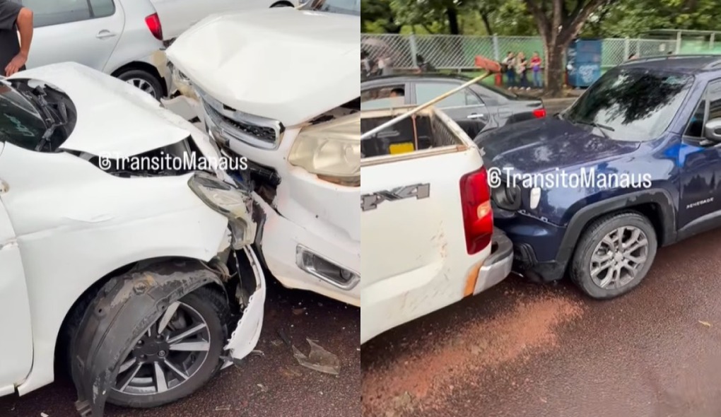 As imagens registradas por pedestres e motoristas mostram os veículos bastante danificados após o impacto. O acidente gerou grande movimentação na avenida e chamou a atenção de outros condutores.