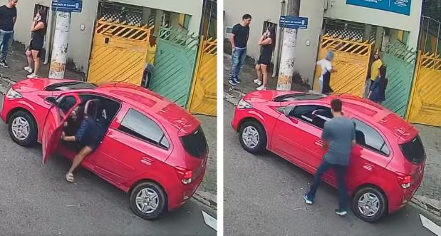 Uma testemunha relatou momentos de tensão durante a ação. Segundo ela, o criminoso chegou a retornar com o carro, e pessoas tentaram impedir a fuga ao perceberem que havia um bebê dentro do veículo.