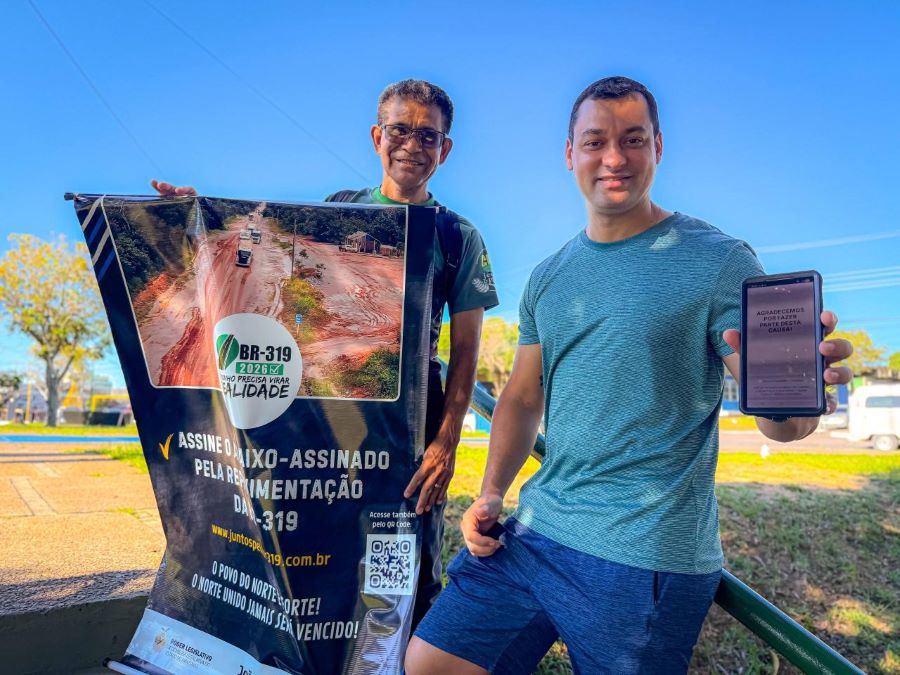 A Frente Parlamentar de Cidades Inteligentes e Sustentáveis da Assembleia Legislativa do Amazonas (Aleam), presidida pelo deputado estadual João Luiz (Republicanos), promoveu, neste fim de semana, um mutirão de coleta de assinaturas em apoio à revitalização da BR-319, rodovia que liga o Amazonas a Rondônia.