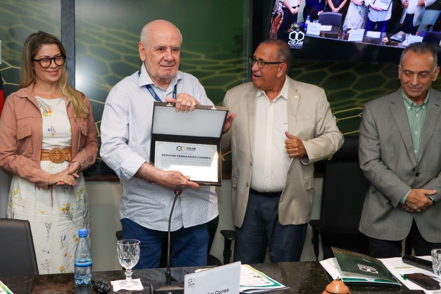 O presidente-executivo do Cieam, Lúcio Flávio de Morais, prestou homenagem a Serafim Corrêa, destacando sua postura aberta ao diálogo, a capacidade de articulação e avanços importantes durante sua gestão, como a regularização de processos e a retomada das reuniões do Codam.