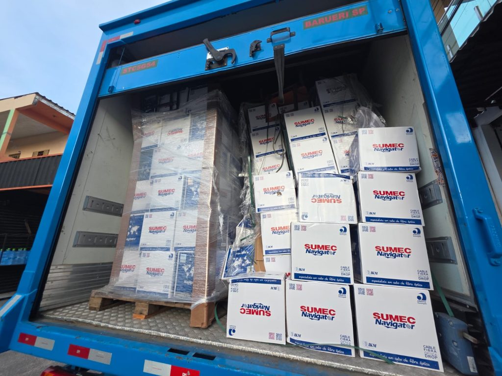 Entre os materiais apreendidos estão mais de 10 mil quilômetros de cabos de fibra óptica e mais de mil roteadores. A carga está avaliada em mais de R$ 500 mil.