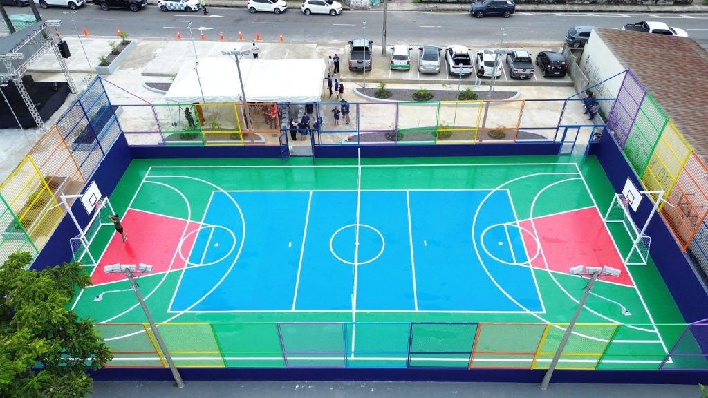 Agora, o complexo conta com quadra poliesportiva com piso de concreto, alambrado e área de convivência, atendendo diferentes faixas etárias.