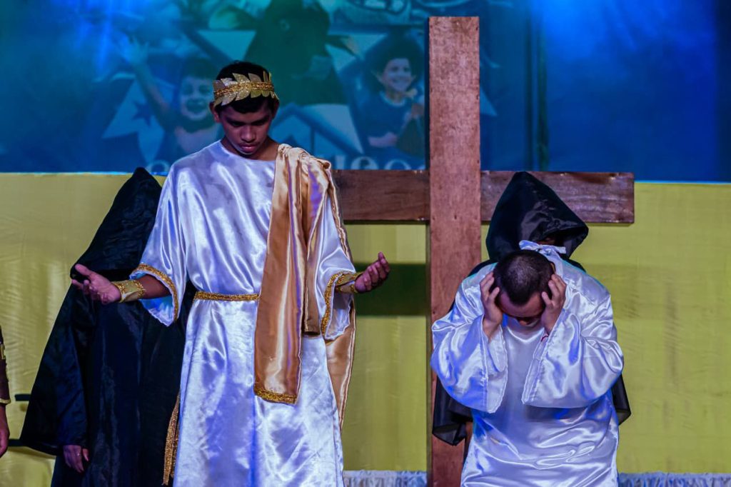 O Curral Zeca Xibelão recebeu, na noite desta quarta-feira (1º), uma apresentação marcada por fé, emoção e inclusão social. Na ocasião, a Associação Pestalozzi, em parceria com o Boi Caprichoso, encenou a Paixão, Morte e Ressurreição de Jesus Cristo.