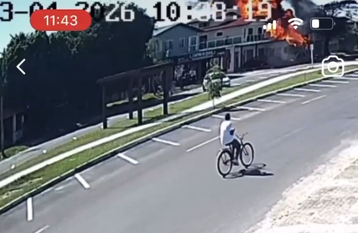 Imagens registradas por testemunhas mostram o momento exato da colisão da aeronave com uma residência. Nas gravações, é possível observar a intensidade das chamas formadas logo após o impacto.
