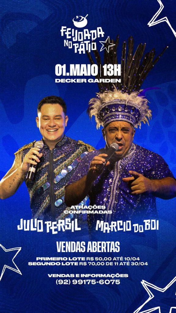 Ao ritmo das toadas do Boi Caprichoso, a Feijoada no Pátio chega à sua sétima edição em Manaus. O evento acontece no dia 1º de maio, a partir das 13h, no Decker Garden, reunindo música e gastronomia em um ambiente voltado à cultura popular amazônica.