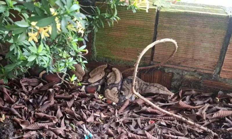 Uma jiboia foi resgatada após aparecer no jardim de uma escola estadual na manhã de terça-feira (07/04), na Avenida Timbiras, bairro Cidade Nova, zona Norte de Manaus. O animal surgiu na área externa da unidade e assustou alunos e funcionários.