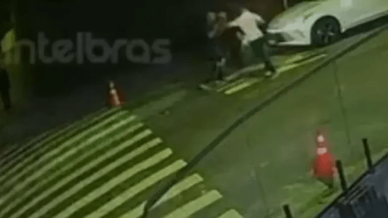 Imagens de câmeras de segurança registraram o momento do confronto ao lado do carro. Os vídeos mostram troca de empurrões antes da briga.