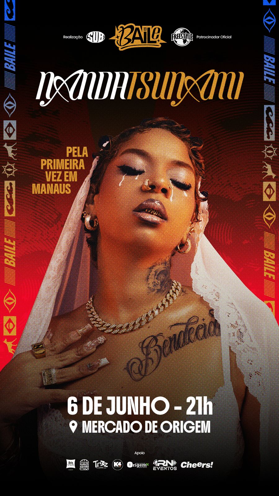 Nanda Tsunami realiza seu primeiro show em Manaus no dia 6 de junho, no Mercado de Origem da Amazônia, localizado no Centro Histórico. O evento conta com organização da produtora independente Subversiva e, dessa forma, reforça a cena urbana da capital. Além disso, os ingressos estarão disponíveis a partir do dia 20 de abril no … Continue lendo Nanda Tsunami faz 1º show em Manaus no Mercado de Origem