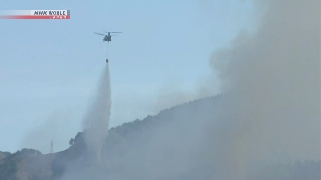 As equipes de combate ao fogo recebem apoio de helicópteros de várias prefeituras. Além disso, as Forças de Autodefesa do Japão realizam lançamentos de água por via aérea.