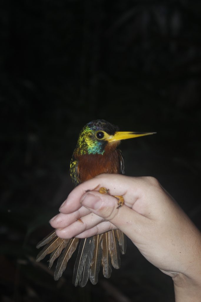 Para investigar como o movimento – a dinâmica – dos rios na paisagem influenciou o acúmulo de espécies de aves na Amazônia, os pesquisadores sequenciaram os genomas de 371 indivíduos de seis espécies de aves do Sul da Amazônia: Galbula cyanicollis (conhecido como ariramba-da-mata), Malacoptila rufa (barbudo-de-pescoço-ferrugem), Thamnophilus aethiops (Choca-lisa), Hypocnemis sp. (cantador-estriado), Phlegopsis nigromaculata (mãe-de-taoca) e Willisornis sp (rendadinho).