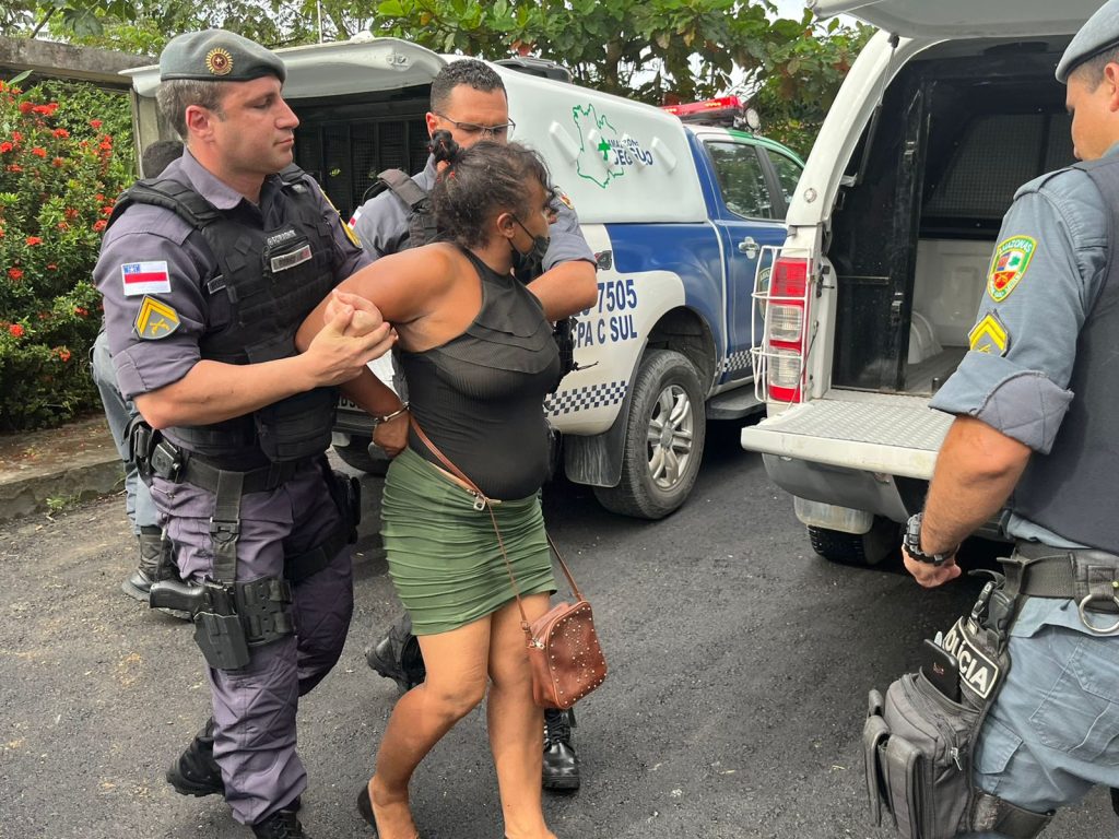 A mulher recebeu voz de prisão e foi encaminhada para o 1º Distrito Integrado de Polícia (DIP), onde irá passar pelos procedimentos cabíveis e ficar à disposição da Justiça.