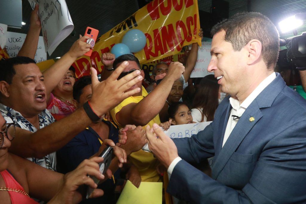 Manaus (AM) – Cerca de 200 pessoas foram nesta quinta-feira, 26, receber o deputado federal Marcelo Ramos (PSD-AM) no aeroporto Eduardo Gomes, que retornava de Brasília. Com faixas e cartazes de apoio, os manifestantes entoavam palavras de ordem e agradecimentos por Ramos seguir na defesa da Zona Franca de Manaus e dos interesses do Amazonas e nas críticas à política econômica que prejudica a atividade industrial no estado.