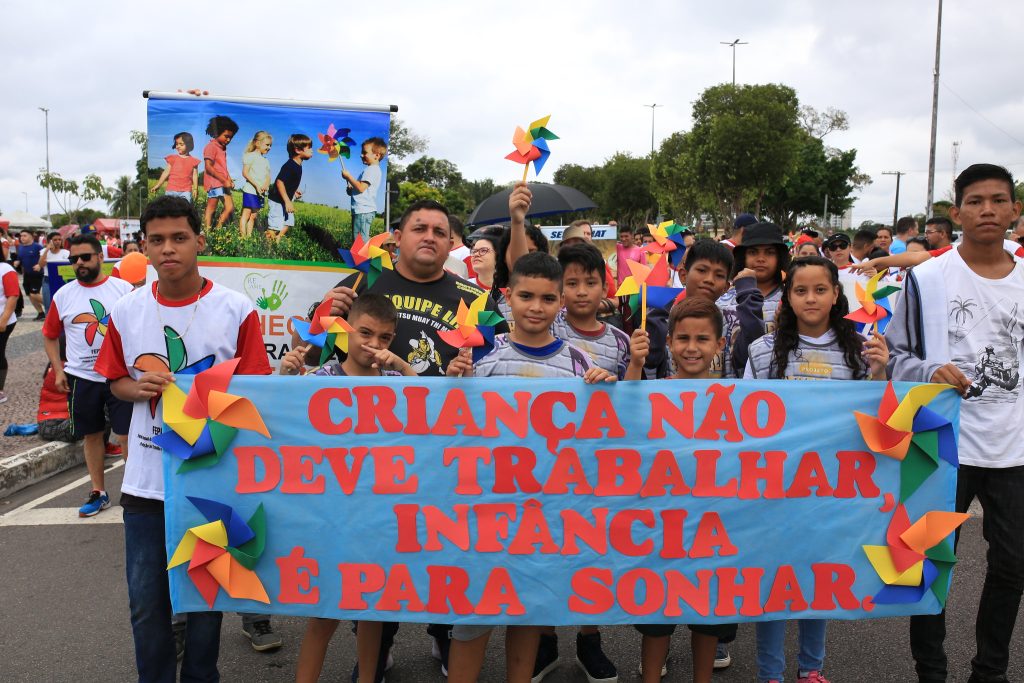 Em Manaus, por meio do Programa de Erradicação do Trabalho Infantil (Peti), têm sido realizadas diversas ações como sensibilização nos semáforos, feiras e casas de acolhimento; parcerias com escolas, Unidades Básicas de Saúde (UBSs), Organizações da Sociedade Civil (OSCs) e Conselho Tutelar; participação em audiências públicas e conferências nacional, estadual e municipal; além de ações conjuntas entre secretarias estaduais e municipais de Educação, Saúde e Esporte.