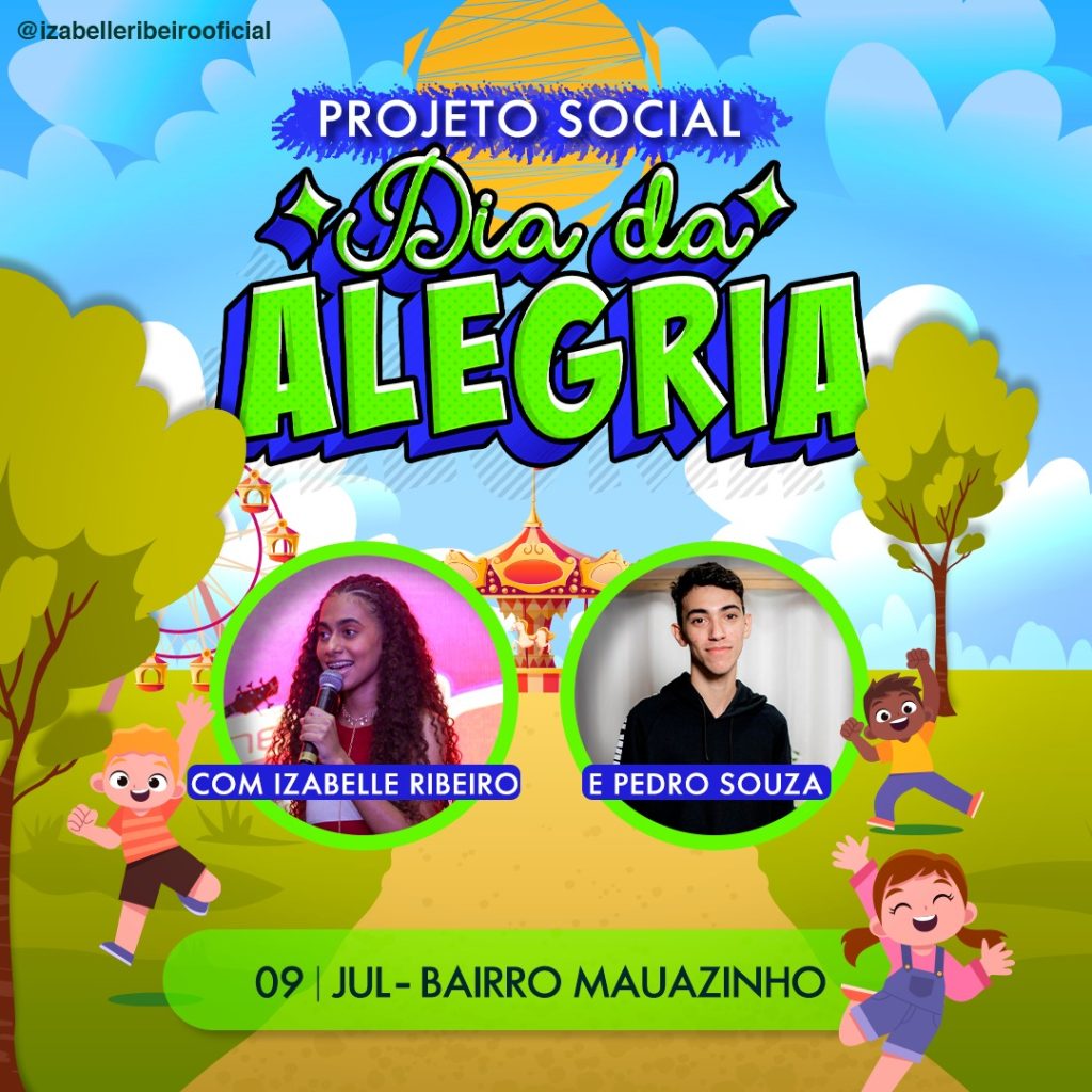 Manaus (AM)- Izabelle Ribeiro, e seu irmão, também cantor, Pedro Souza realizam no dia 9 de julho de 2022, o projeto social ‘Dia de Alegria’, no bairro Mauazinho, Zona Sul de Manaus.