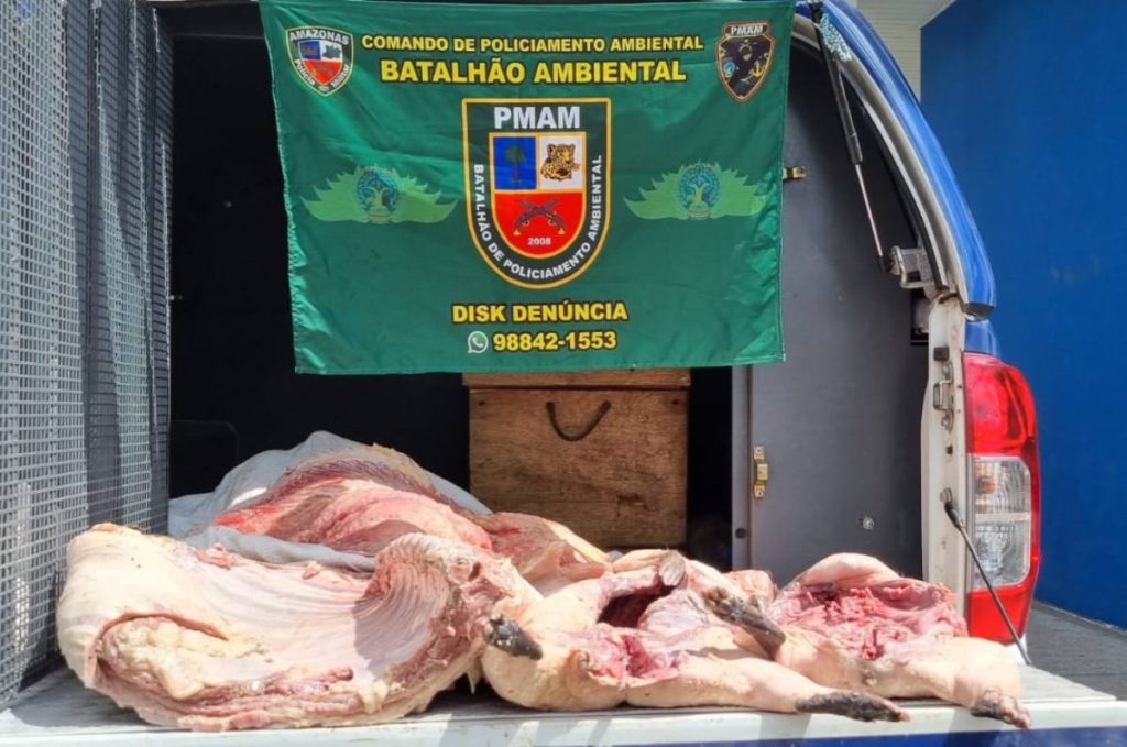 Policiais militares do Batalhão de Policiamento Ambiental (BPAmb), vinculado ao Comando de Policiamento Ambiental (CPAmb), apreenderam aproximadamente 99kg de carne de animais silvestres na quinta-feira (16), em uma feira no bairro Colônia Santo Antônio, Zona Norte de Manaus.
