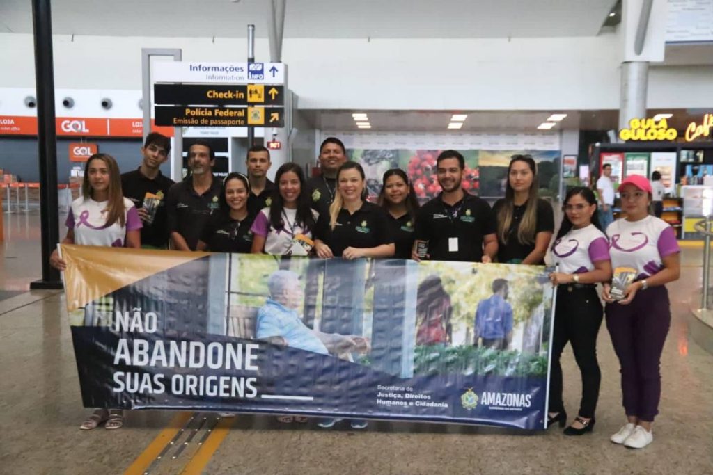 Manaus (AM) – A Secretaria de Justiça, Direitos Humanos e Cidadania (Sejusc) realizou, nesta sexta-feira (17/06), a campanha “Não Abandone suas Origens”, em alusão ao Junho Violeta, visando conscientizar a sociedade contra o abandono dos idosos no estado. A iniciativa ocorreu no Aeroporto Internacional Eduardo Gomes, Zona Oeste da capital e segue nos dias (18, 20 e 21/06), no Porto de Manaus.