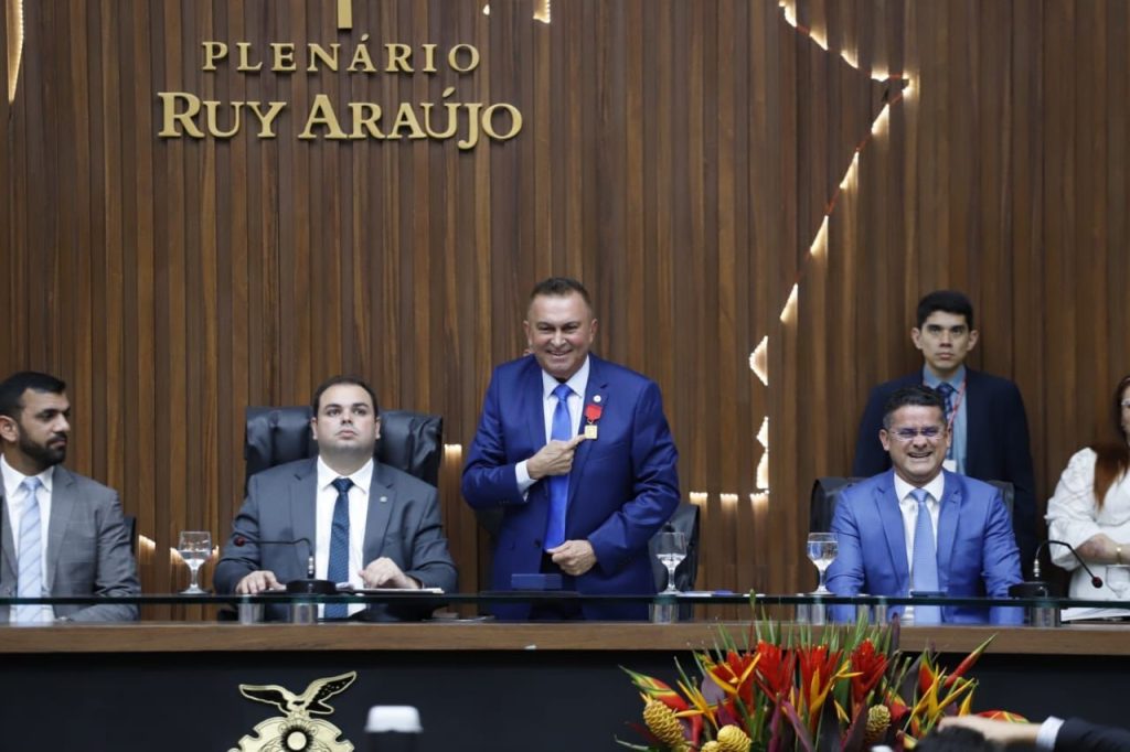 Manaus (AM) – O ex-deputado e ex-vereador Sabá Reis recebeu, nesta segunda-feira (20), uma Medalha de Mérito Ruy Araújo, em uma sessão de homenagem na Assembleia Legislativa do Amazonas (Aleam). A condecoração é a maior comenda do Legislativo Estadual.
