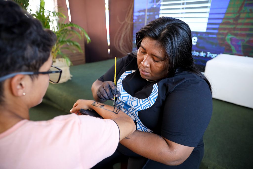 “Eu já sabia fazer o jenipapo, e o meu tuxaua me incentivou muito. Eu comecei a praticar e eu fui aperfeiçoando meu dom e levando essa arte para Brasília, Goiânia, São Paulo e algumas aldeias de Manaus e entorno. Hoje eu trabalho levando a resistência cultural e reflorestando jenipapo para futuras gerações. Já plantei 80 mudas de jenipapo e estou com o objetivo de plantar 200 e levar esse trabalho pro Brasil todo. É um trabalho de resistência”, destacou.