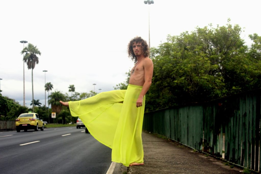 A rua é um lugar de protesto e o palco do artista independente. Eu e Inácio passamos a experimentar coisas na rua, a partir das nossas reflexões sobre o caos que há dentro de nós e com roupas não cotidianas. Foi uma experiência bastante interessante sobre pensar no caos. Quando esse caos acontecia, notamos que havia uma certa preocupação, um cuidado por parte dos motoristas