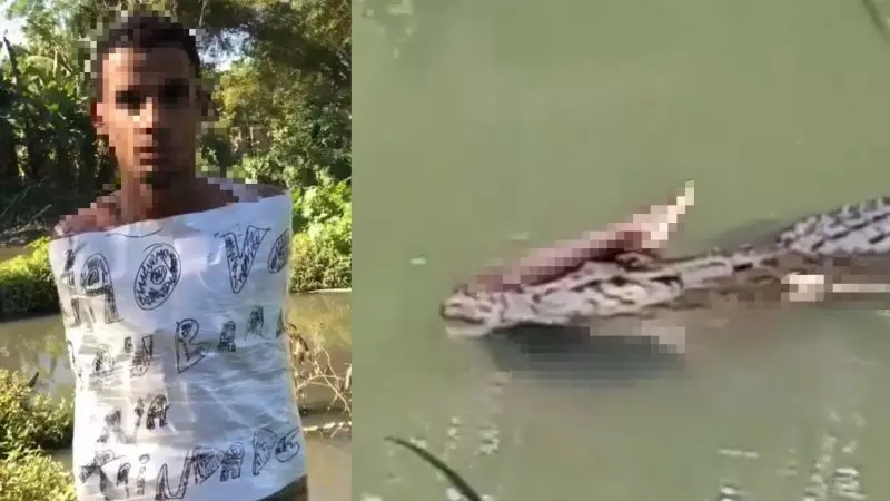 O segundo vídeo sobre o suposto ladrão têm chocado os internautas. As imagens mostram um jacaré carregando um corpo humano, supostamente do homem condenado pelos criminosos. Nas imagens é possível notar que a vítima trajava uma bermuda escura e tinha metade da perna para fora da água. Em determinado momento o jacaré afunda com o cadáver.