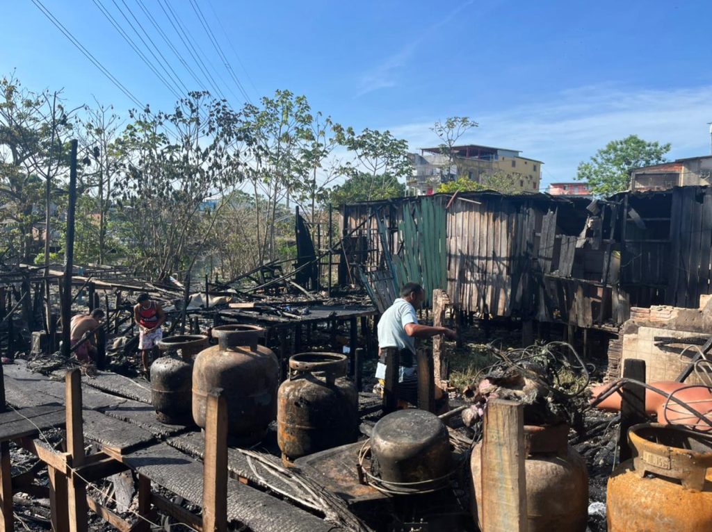 Manaus (AM) – Moradores das 16 casas palafitas, destruídas por um grande incêndio no bairro São Jorge, Zona Oeste de Manaus, na noite de terça-feira (26), pedem ajuda e doações, pois muitas perderam objetos pessoais e imóveis.