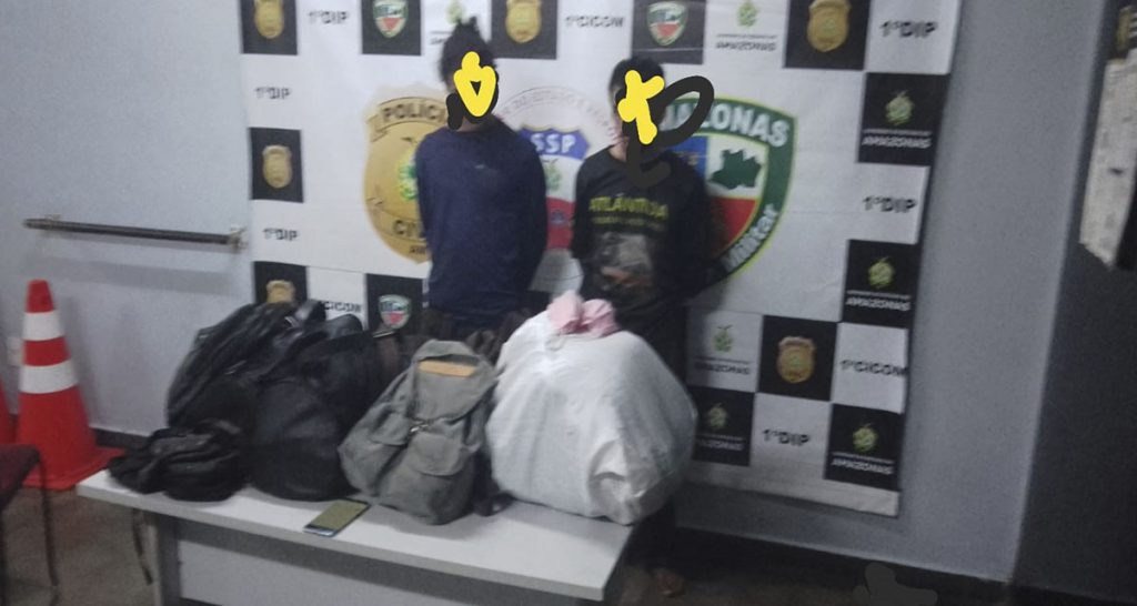 Os irmãos Sharlan e Arcanjo Souza Carneiro, de 19 e 28 anos, respectivamente, foram interceptados por uma viatura da Polícia Militar, no momento em que desciam do ônibus com quatro aparelhos celulares e uma carteira contendo R$ 106,00, além de documentos de uma das vítimas.