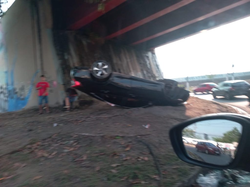 O acidente ocorreu por volta das 4h30, no sentido Centro/bairro. A motorista perdeu a direção e acabou batendo no canteiro central. Com o impacto, o carro capotou e passou por cima de uma barreira de contenção.