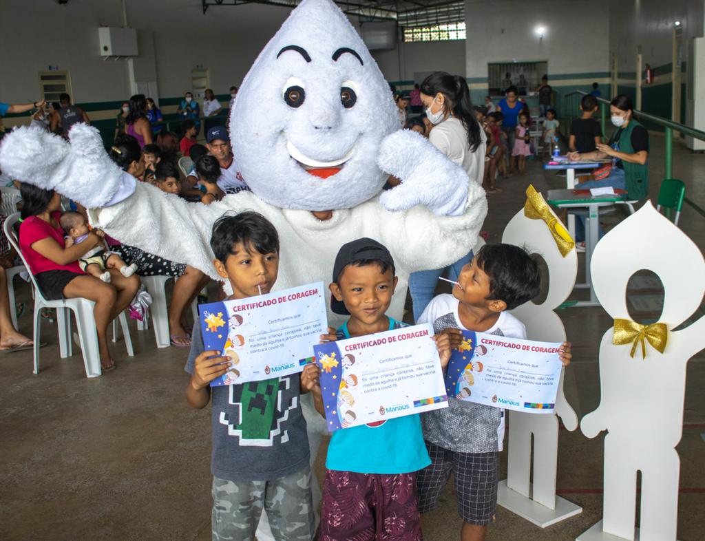 Uma das estratégias para estimular as crianças, encorajando-as a se vacinar, adotadas pela Semsa, foi a entrega dos Certificados de Coragem, que é concedido após o recebimento dos imunizantes.