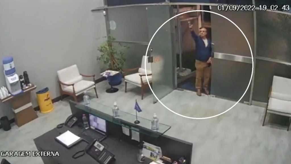 Câmeras de segurança gravaram o momento em que Barbiere conversava com outro homem na porta do diretório. Depois, o homem de preto entrou no imóvel, e o deputado tirou a arma do casaco, entrou no diretório, e disparou para cima. Em seguida, ele deixou o local.