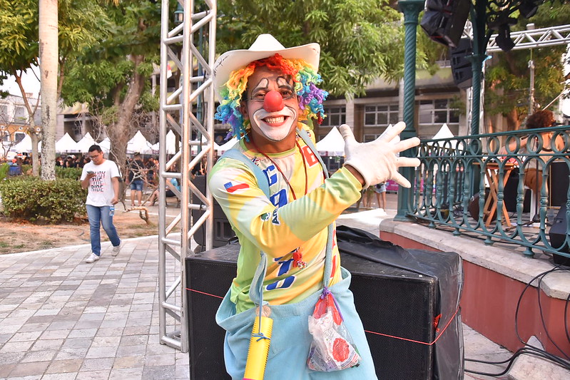 Na praça Dom Pedro II, logo no início das atividades, quem passava era recepcionado pelo palhaço Tapioca, e o palhaço Pipoca se desdobrava em meio ao público, para criar esculturas de balões.