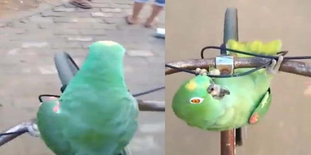 Um vídeo publicado no Twitter no último domingo (4) já alcançou 2,4 milhões de visualizações. Nas imagens é possível ver um papagaio em cima de uma bicicleta imitando o som de um escapamento de moto.